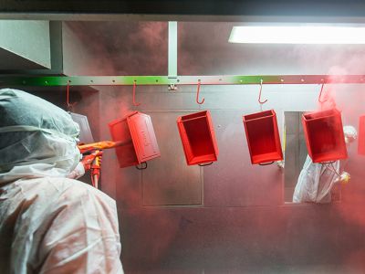 Die Pulverbeschichtung ist ein umweltfreundliches und Ressourcen schonendes Verfahren zur Veredelung und zum Schutz von metallischen Oberflächen. Der Stellenwert der Beschichtung hat in den letzten Jahren stark zugenommen, da es sich – gegenüber dem Nasslackieren – um ein sehr umweltfreundliches Verfahren handelt. Moderne Pulverlacke werden elektrostatisch appliziert. Bei der elektrostatischen Pulverbeschichtung wird zunächst eine elektrisch geladene Pulverwolke erzeugt. Die gleichnamig geladenen Partikel werden zur Werkstückoberfläche transportiert. Dort schlagen sie sich nieder, haften dort elektrostatisch und bilden die Pulverlackschicht. Schließlich verbindet sich bei thermischer Behandlung im Ofen das Pulver bei 160–200 °C zu einem geschlossenen Farbfilm.